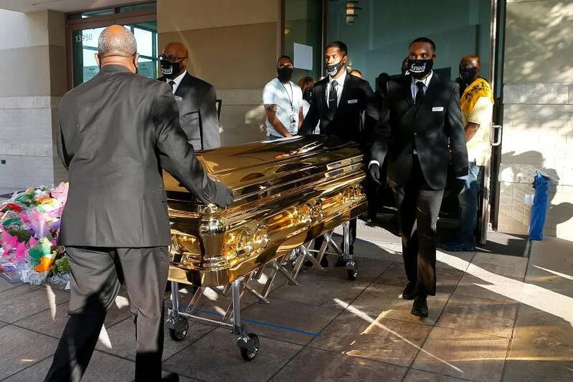 HOUSTON: Ribuan warga Amerika Syarikat tampil memberi penghormatan terakhir kepada mendiang, Encik George Floyd, semasa acara pengebumiannya hari ini.