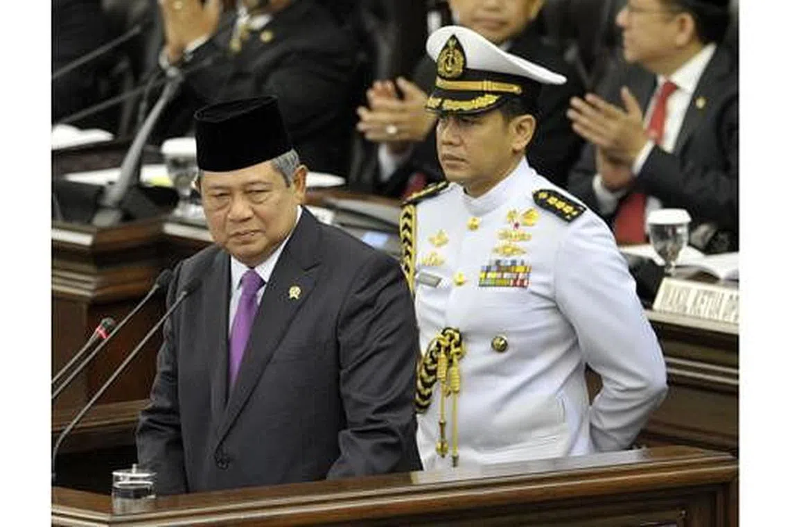 PIDATO KENEGARAAN: Presiden Susilo Bambang Yudhoyono memberi ucapan terakhir di Parlimen semalam. - Foto AFP -