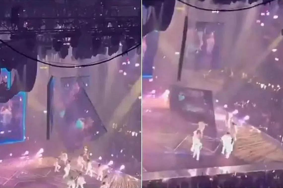 Go to BHkuSkrin gergasi jatuh semasa konsert di Hong Kong, 2 penari cedera