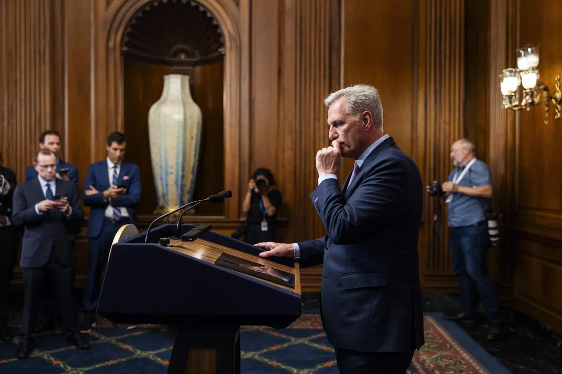 WASHINGTON: Sebilangan anggota Republikan di Dewan Perwakilan Amerika Syarikat telah memecat Speaker Dewan Republikan, Encik Kevin McCarthy, menyusuli pertelingkahan dalaman parti hanya beberapa hari selepas hampir-hampir mengalami penutupan pentadbiran persekutuan.