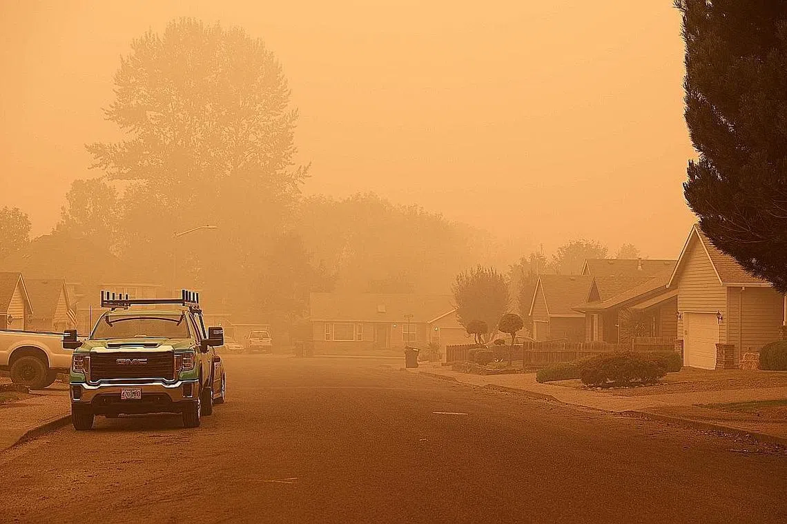 SEKITARAN BERTUKAR JINGGA: Ruang udara dan sekitaran di kawasan Molalla, Oregon, bertukar jingga ekoran kebakaran besar melanda kawasan itu. - Foto AFP -