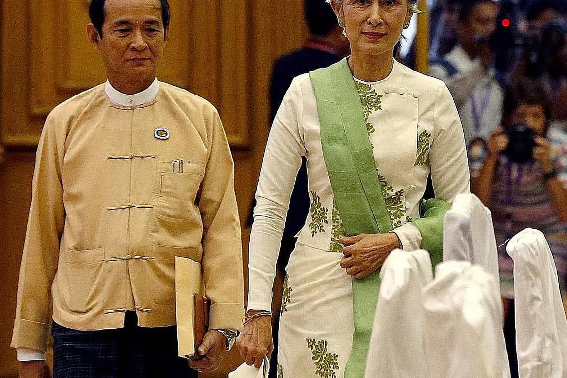 Mantan presiden, Win Myint, juga dipenjara empat tahun atas tuduhan yang sama, namun mereka belum dibawa ke penjara