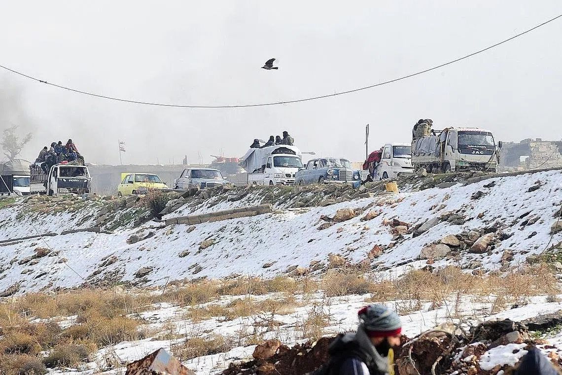 MENINGGALKAN ALEPPO: Anggota pembangkang dan orang awam kelihatan meninggalkan Aleppo dalam perjanjian yang membenarkan mereka meninggalkan bandar itu. - Foto AFP -