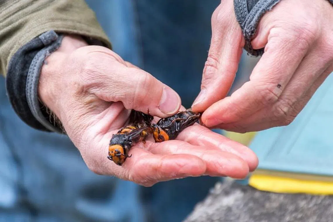 Tebuan Vespa mandarinia boleh bersaiz 6.35 sentimeter panjang dan berasal dari Asia Tenggara, China dan Taiwan. - Reuters