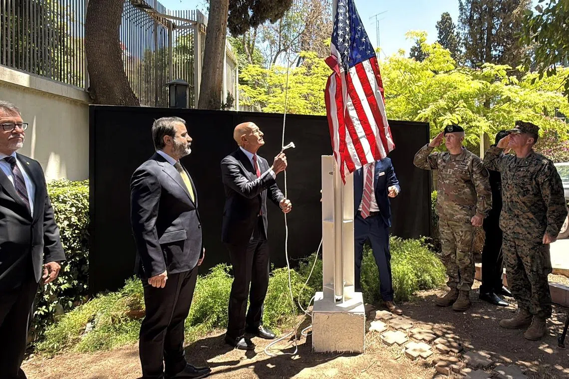 Encik Barrack mengibarkan bendera Amerika di kediaman duta buat kali pertama sejak kedutaan Amerika ditutup pada 2012, menandakan perkembangan pesat hubungan Amerika dengan Damsyik.