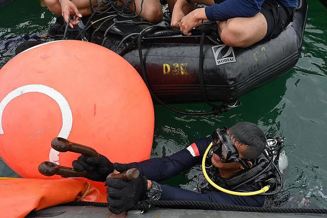 "Mereka harus meredah sampah, serpihan lain (di dasar laut) dan lumpur. Jjarak pandang juga menjadi cabaran," kata Encik Yusuf Latif, jurucakap agensi mencari dan menyelamat Indonesia.