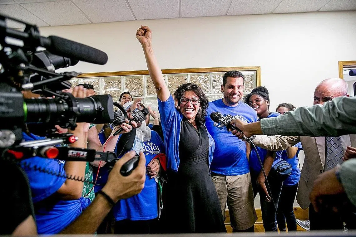 CATAT SEJARAH: Cik Rashida meraih 33.6 peratus undi selepas mendapat bantuan akar umbi untuk berkempen hingga berjaya mendapat AS$1 juta ($1.37 juta). Kemenangannya menjadikan beliau wanita Islam pertama di Kongres, iaitu 12 tahun selepas Keith Ellison dari Minnesota, menjadi orang Islam pertama menduduki kerusi Dewan Perwakilan Amerika. - Foto THE NEW YORK TIMES -