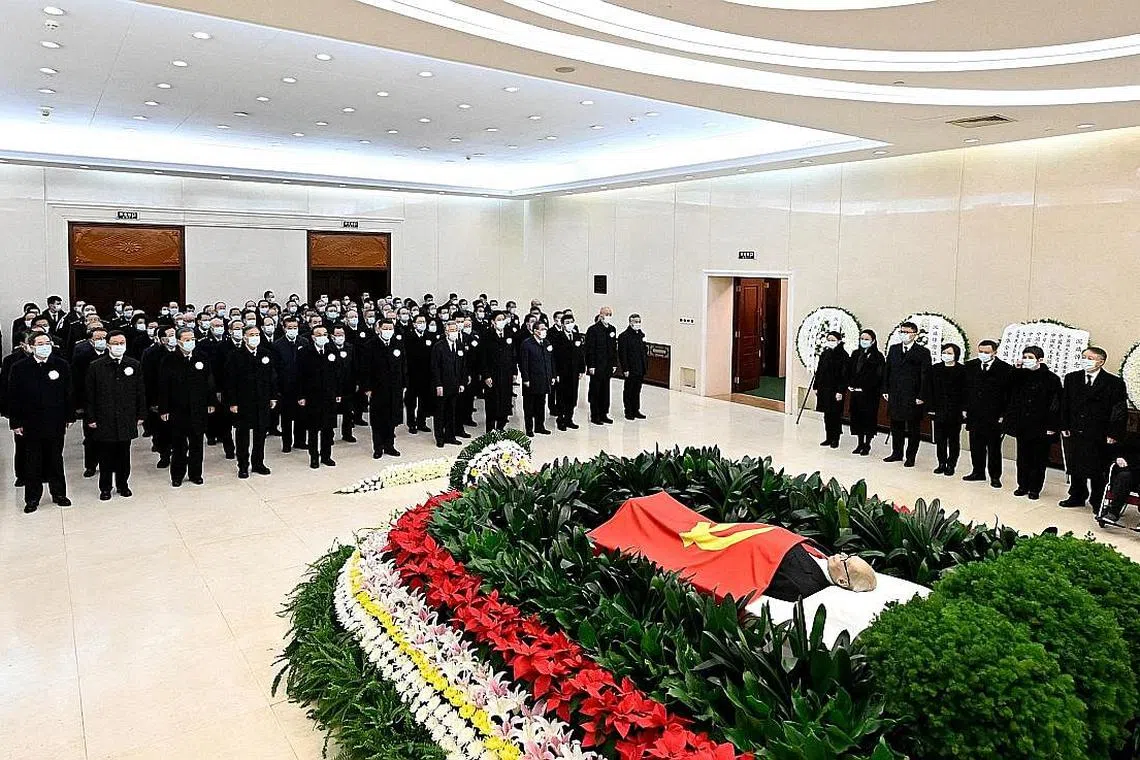 BEIJING: Presiden China Xi Jinping telah memberi penghormatan kepada mantan presiden China, Encik Jiang Zemin, di atas sumbangan mendiang dalam memastikan Parti Komunis bertahan daripada "ribut politik" dan mengubahnya untuk menyuntik tenaga baru dan memodenkan ekonomi negara.