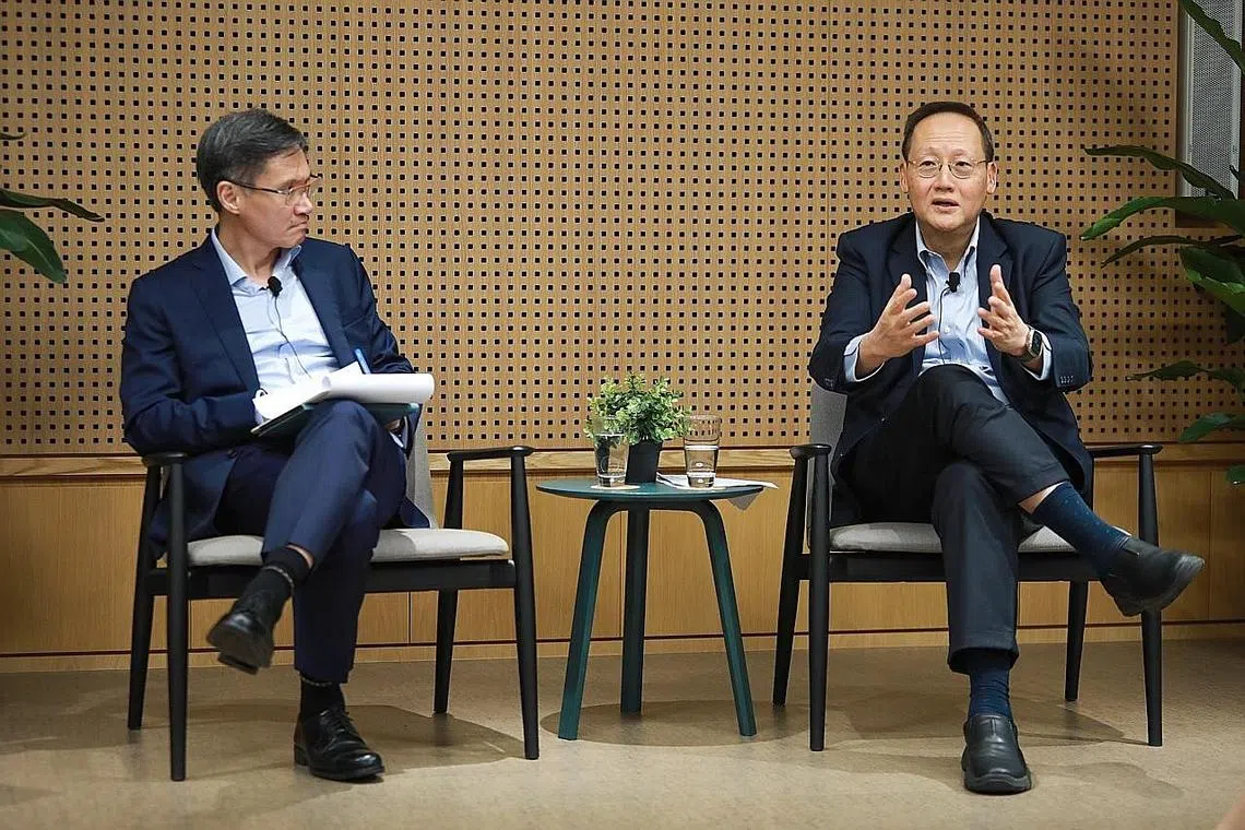 KONGSI PANDANGAN: Pemerintah memegang ramalan yang berhati-hati mengenai pasaran pekerja memandangkan ketidaktentuan ekonomi global, kata Menteri Tenaga Manusia, Dr Tan See Leng (kanan), semasa lawatannya ke syarikat tempatan, Agape Services. Bersama beliau ialah pengarah dan ketua pegawai operasi Agape Business Group, Mr Raphael Saw. - Foto ST -