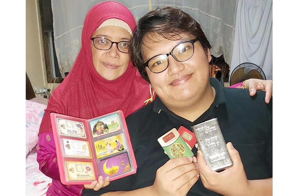 Cik Bibah Mohd Atan berkata anak bongsunya, Encik Izz Ziyad Sharel, 20 tahun, juga merupakan pengumpul emas dan perak sejak 2017 lagi.