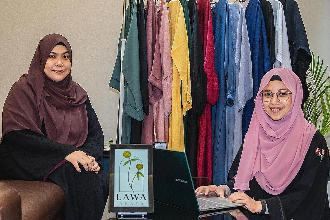 CABARAN BUKAN HAMBATAN: Ustazah Syariati Sulaiman (kanan), yang bersama rakan kongsinya, Cik Nurhani Razali, berkata menceburi bidang perniagaan "memang agak mencabar tetapi secara perlahan kami belajar tentang pemasaran, aspek logistik dan berkomunikasi dengan pembeli" dan meneroka penggunaan media sosial. - Foto BH oleh NUR DIYANA TAHA -