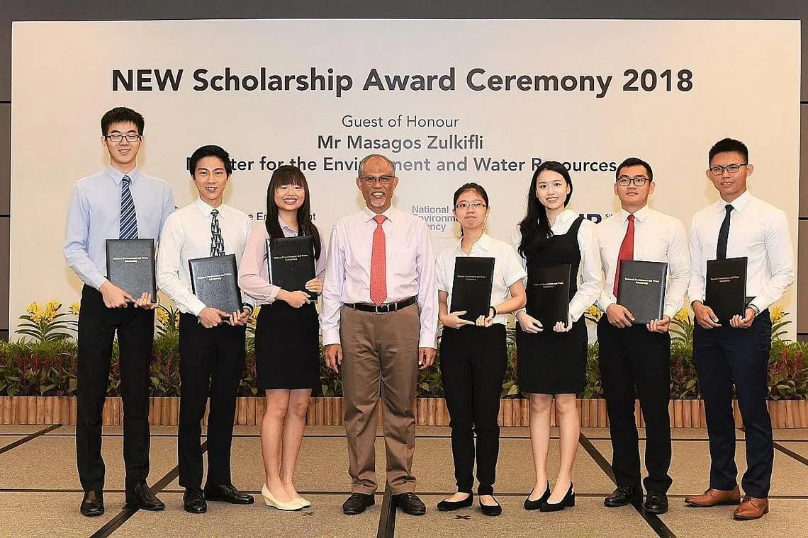 SEKUMPULAN sembilan calon dipilih daripada 600 pemohon bagi menerima Biasiswa Sekitaran dan Air Kebangsaan (NEW) dari Menteri Sekitaran dan Sumber Air Masagos Zulkifli Masagos Mohamad semalam.