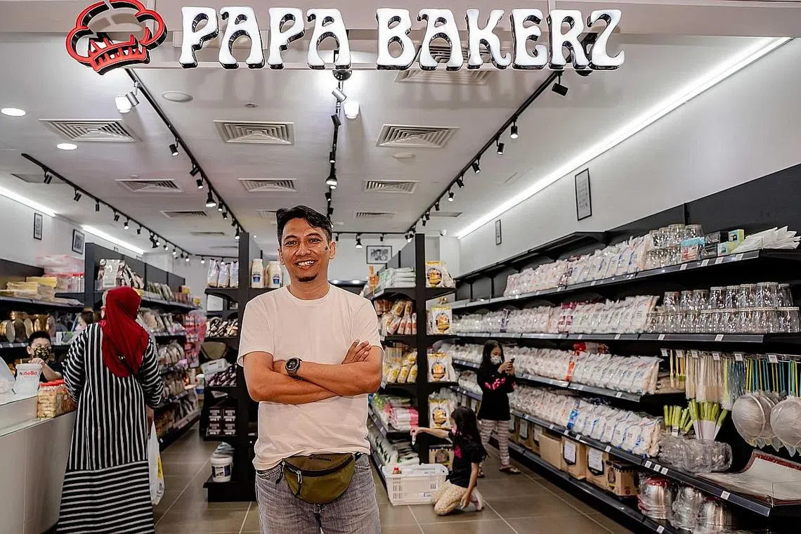 SIAP KHIDMAT: Encik Jeffrezain Ab Jaleel, siap memastikan bahan-bahan yang diperlukan untuk memasak kek dan kuih-muih sentiasa memenuhi cita rasa pelanggan di Papa Bakerz yang terletak di lantai B1 Century Square di Tampines. -