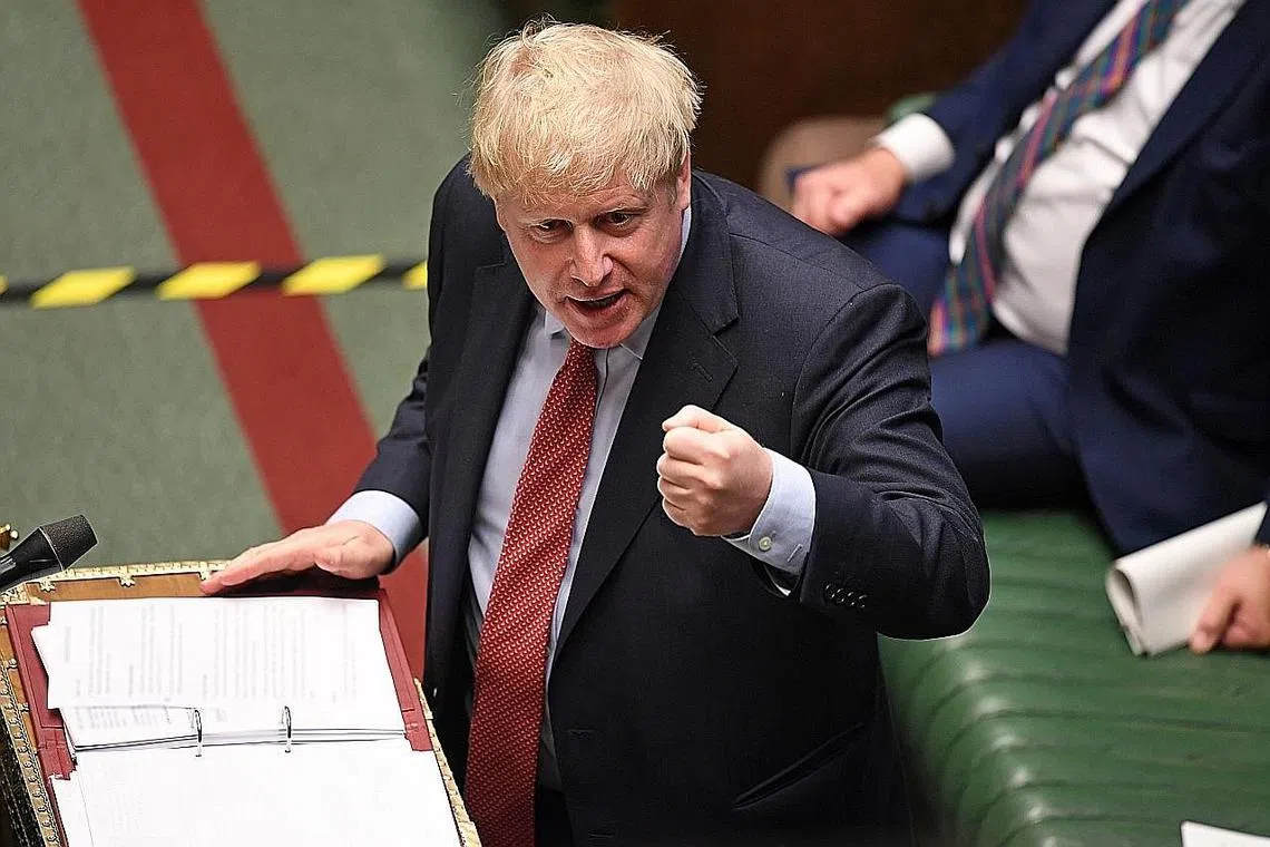 MAHU KEPUTUSAN DITARIK BALIK: Anggota Parlimen Parti Konservatif, yang dianggotai Encik Boris Johnson, bertekad memaksa pemerintah menarik balik keputusan yang diambil Januari lalu untuk membenarkan Huawei membekalkan peralatan 5G kepada Britain. - Foto REUTERS -