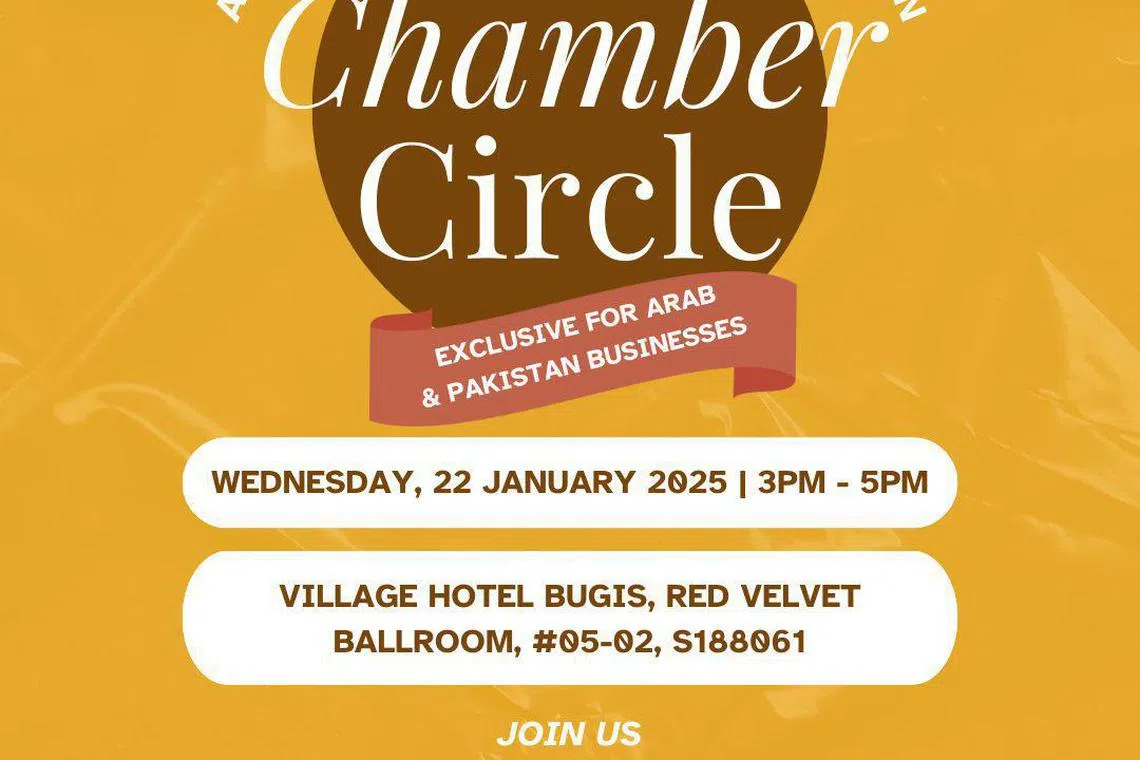 Sesi pertama Chamber Circle, yang ditujukan kepada perniagaan Pakistan dan Arab, akan diadakan pada 22 Januari, di Red Velvet Ballroom, Hotel Village.