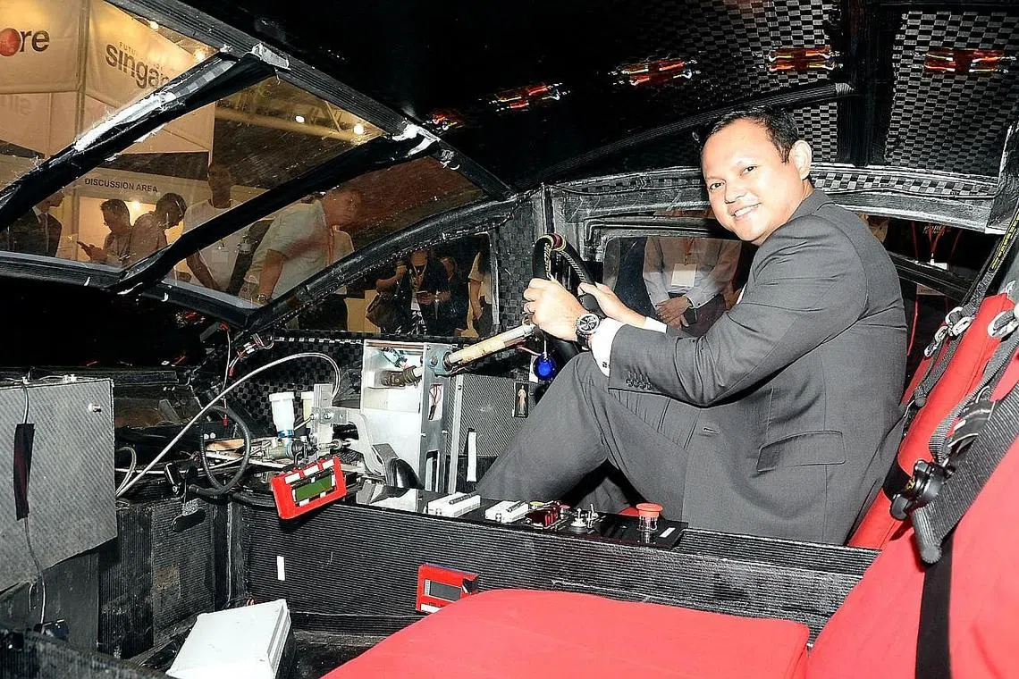 CIPTAAN SINGAPURA: Encik Zaqy mencuba kereta suria ciptaan Politeknik Singapura (SP) yang dipamerkan dalam pameran Ceti Asia di Singapore Expo semalam. Kereta suria itu menyertai Cabaran Suria Dunia tahun lalu dan dipandu sejauh 3,000 kilometer dari Darwin ke Adelaide di Australia tanpa menggunakan minyak petrol. - Foto JOHARI RAHMAT -