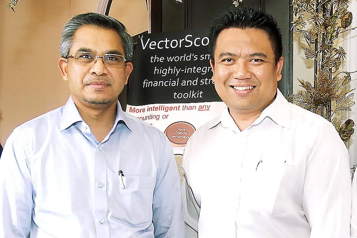TUNGGAK NIAGA: Ketua Pegawai Eksekutif (CEO) MyFinB.com (kanan) memiliki anak syarikat MyFinB Sdn Bhd, Encik M. Nazri Muhammad; bersatu tenaga dengan cendekiawan kewangan Islam tersohor di Malaysia yang juga Pengerusi Amanie Group, Datuk Dr Mohd Daud Bakar. - Gambar fail -