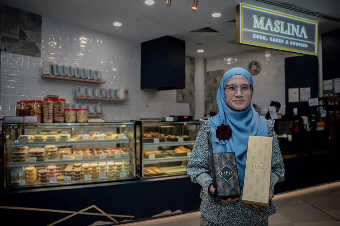 Pemilik kedai Deli Maslina, Cik Adibah Ahmad, telah memperbaharui bungkusan kek lapis Deli Maslina untuk menarik perhatian pelanggan. - Foto BH oleh NUR DIYANA TAHA
