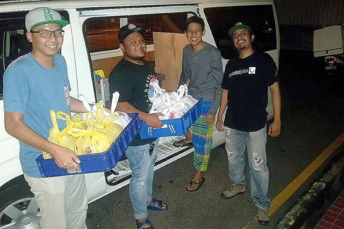 SIAP DIHANTAR: Encik Muhammad Fazly (dua dari kiri) sedang bersiap menghantar makanan ke rumah pelanggan untuk dimakan waktu sahur. - Foto KASSIMBABA -