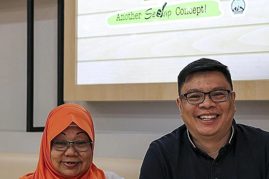 RAIH KEMAHIRAN DIGITAL: Menerusi kursus latihan di tempat kerja, kakitangan cawangan makanan Encik Tan seperti Cik Selitenoor Zainal dapat meraih kemahiran menggunakan teknologi. Cawangan makanan Encik Tan dikendalikan syarikat Fei Siong Food Management. Bersama dalam gambar ini ialah Pengarah Eksekutif Fei Siong Food Management, Encik Tan Kim Leng. - Foto BH oleh YONG LI XUAN -