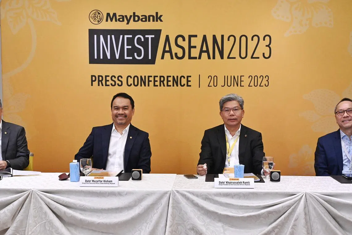 Ini diumum oleh Presiden Kumpulan & Ketua Pegawai Eksekutif (CEO) Maybank, Datuk Khairussaleh Ramli, semasa sidang media di persidangan Invest Asean 2023 di Fullerton Hotel pada Selasa.