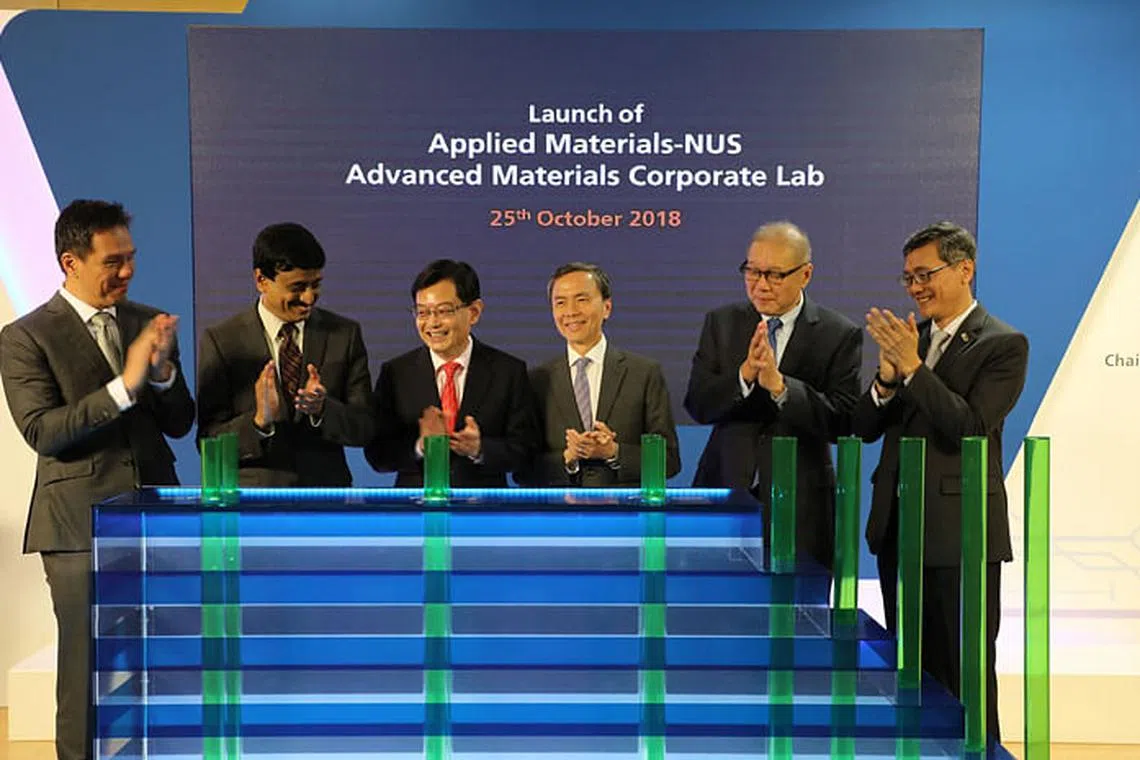MENYOKONG INDUSTRI SEMIKONDUKTOR LANJUTAN: Encik Heng (tiga dari kiri) melancarkan Makmal Korporat antara Applied Materials dengan Universiti Nasional Singapura (NUS) di NUS semalam. - Foto APPLIED MATERIALS-NUS -