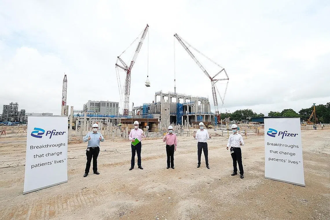 SYARIKAT farmaseutikal Amerika Syarikat Pfizer telah mula membina sebuah kilang barunya di Taman Bioperubatan Tuas, yang dijangka siap pada 2024.