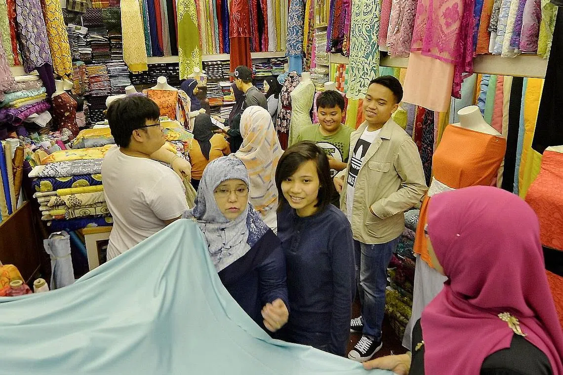 Sebelum ketibaan Ramadan, kedai-kedai kain dikunjungi pelanggan untuk membeli kain bagi dipakai pada lebaran nanti. Kawasan Kampong Glam menjadi tumpuan pelanggan di Singapura tetapi ada juga yang membeli kain di luar negara. NORHAIZA HASHIM (norhaiza@sph.com.sg) meninjau suasana niaga kedai-kedai tekstil di Arab Street serta kedai-kedai yang mengambil tempahan jahit di Golden Landmark.