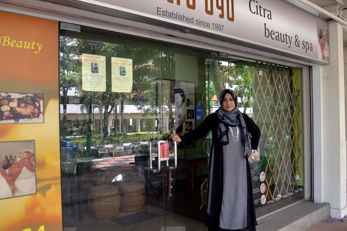TARIKAN TERSERLAH: Cik Zubaidah Chalan Hassan, yang memiliki kedai yang menempatkan Citra Ayu Beauty & Spa di Bedok North Street 3, terdorong dengan subsidi lebih tinggi diberikan di bawah ROS. - Foto SHAKIR SAIFUDDIN -