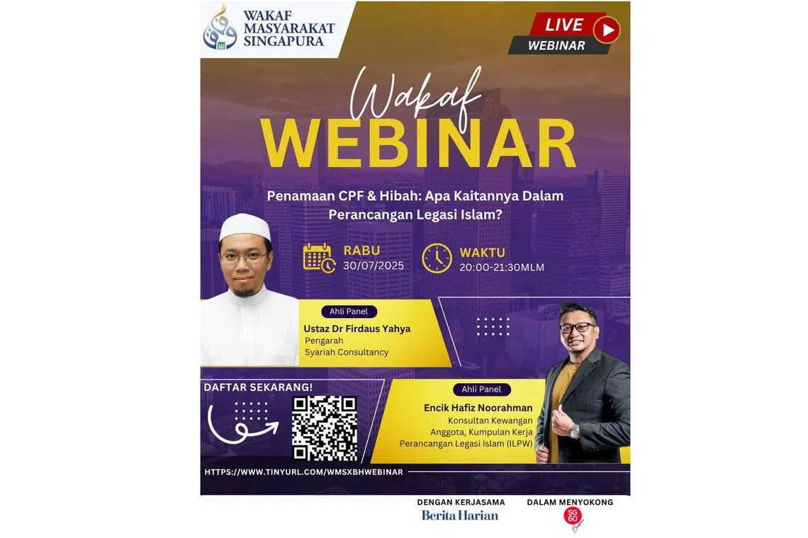 Webinar Penamaan CPF dan Hibah: Apa Kaitannya dalam Perancangan Legasi Islam? merupakan siri webinar yang dianjurkan Wakaf Masyarakat Singapura (WMS) dengan kerjasama Berita Harian (BH).