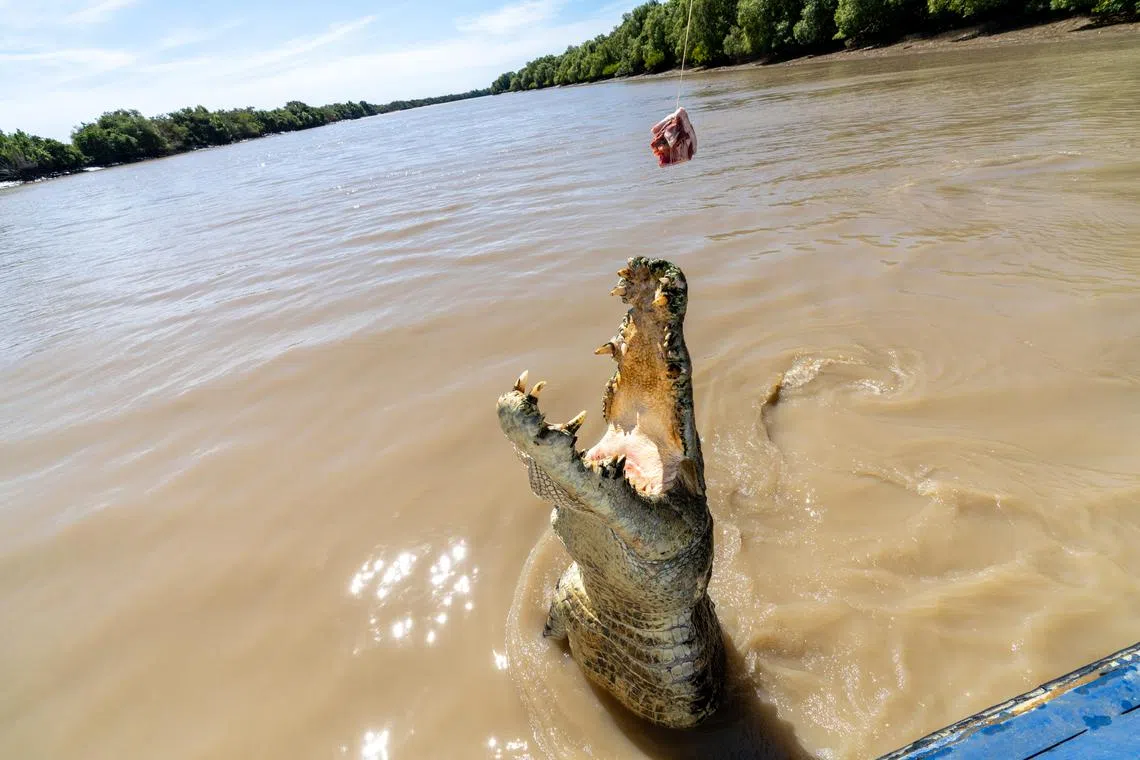 Buaya melahap umpan di Sungai Adelaide. - Foto TOURISM AUSTRALIA
