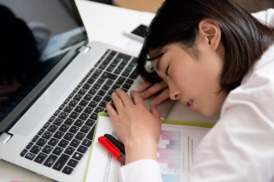 LESU: Andai tidak mengambil langkah-langkah mengelak rasa mengantuk di pejabat, beginilah jadinya. Pekerja boleh terlelap di meja tugas hingga menyebabkan mutu kerjanya terjejas. - Foto fail -