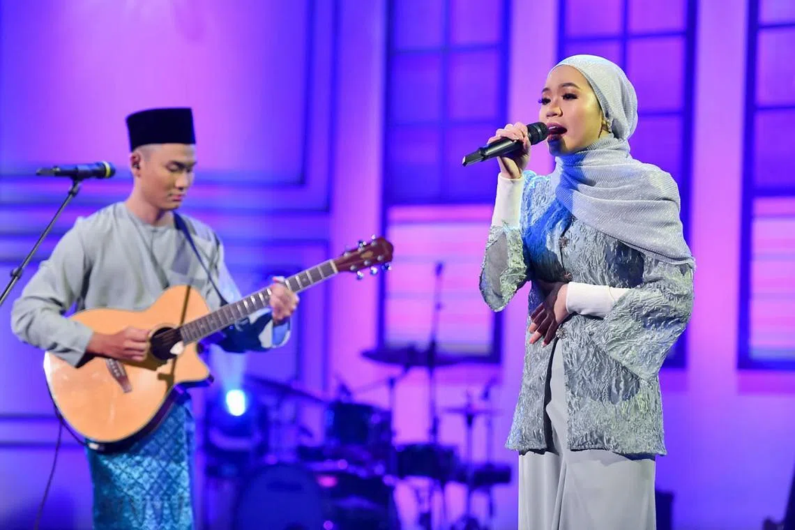 PENGALAMAN SULUNG: Duo adik-beradik, Anak-Anak Haron, yang terdiri daripada Ahmadul Amin (kiri) dan Nuur Afiqah Haron, bereksperimen dengan versi akustik lagu Najwa Latif, 'Hari Raya Kita' dalam rancangan hiburan, 'Rayakustika 2021' pada 8.30 malam ini. - Foto MEDIACORP SURIA -