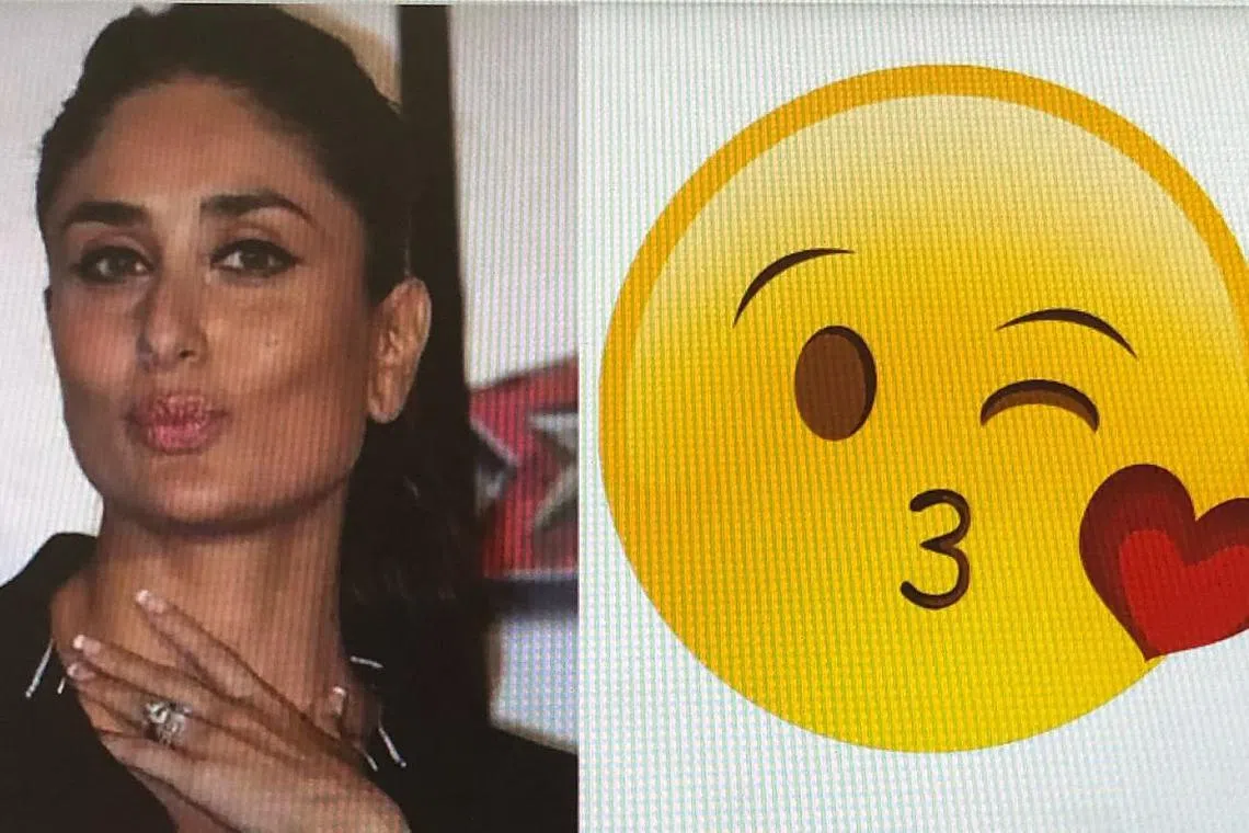 KAREENA KAPOOR: Sikap romantisnya yang tergambar dalam foto ini disamakan seperti emoji seseorang yang memberi kucupan. Beliau antara artis Bollywood yang gambarnya diguna seiringan Hari Emoji Sedunia di beberapa laman media sosial. - Foto TIMES OF INDIA -