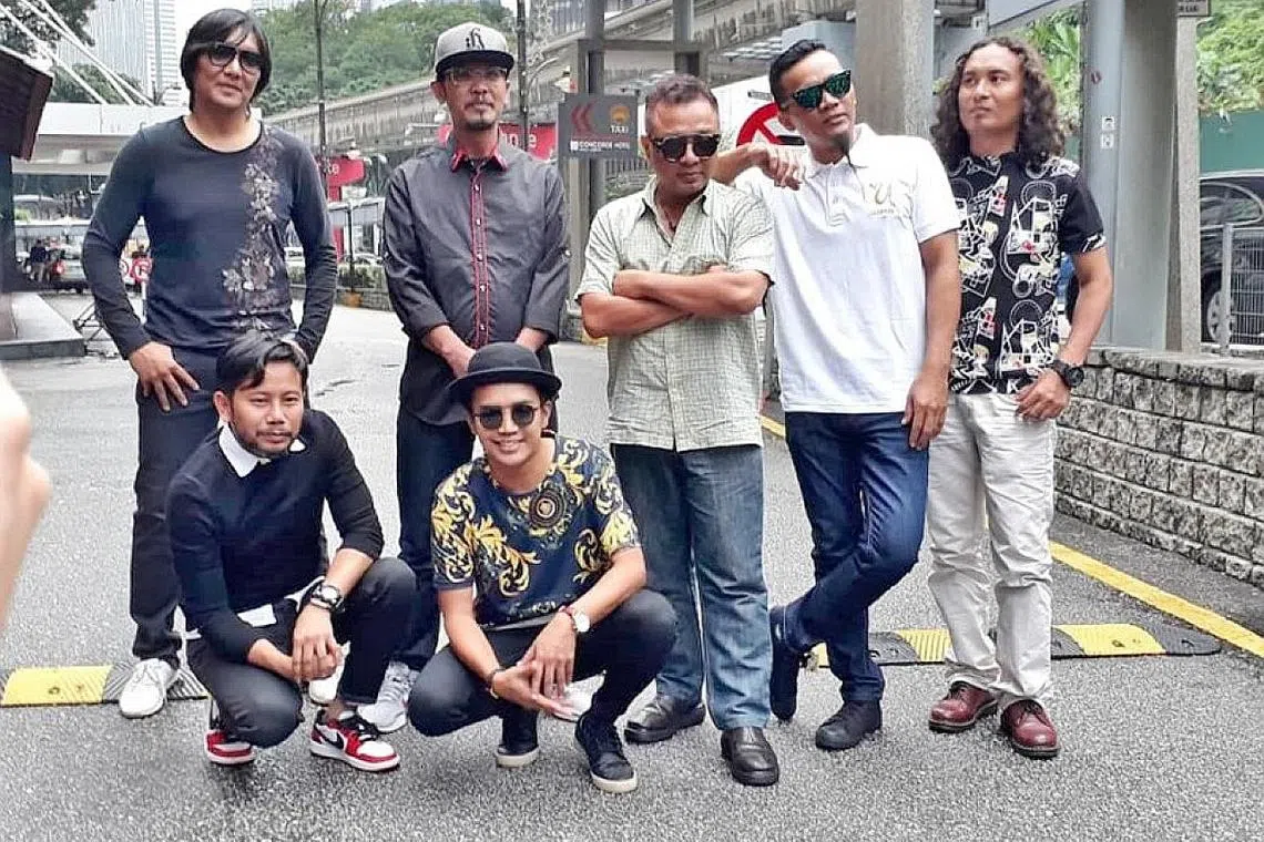 MENGHARAPKAN YANG TERBAIK: Kumpulan Exists, yang akan mengadakan konsert penyatuan semula anggota asal dan baru, dapat meneruskan latihan seperti biasa selepas vokalis pertamanya, Mamat (berdiri dua dari kiri) ditahan polis kerana disyaki memiliki dadah pada Ahad lalu. Mamat kemudian dibebaskan dengan jaminan polis hasil permohonan penganjur konsert Shiraz Projects. - Foto BEBAS NEWS -