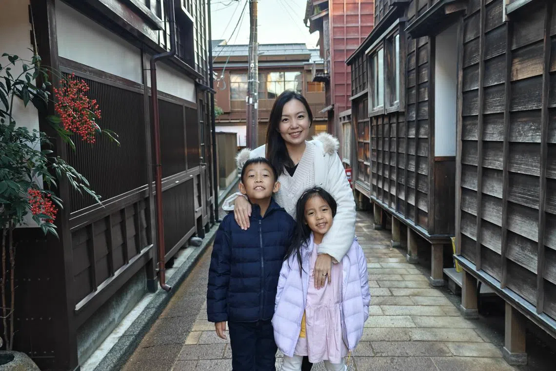 Cik Jacinth Liew bersama dua anaknya, Daryl Chua dan Charlotte Chua. - Foto JACINTH LIEW