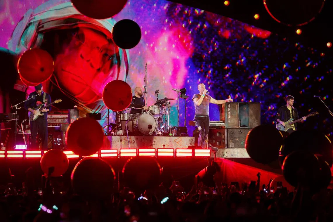 PEMBUKAAN HEBAT: Chris Martin dari Coldplay membuat persembahan di ‘Music of the Spheres World Tour’ di Stadium Negara pada 23 Januari 2024. - Foto ST