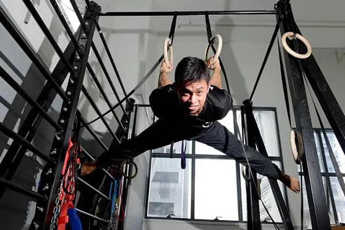 LATIHAN MENCABAR: Encik Muhammad Firdaus menjelaskan bahawa senaman kalistenik - sejenis gerak badan bertujuan meningkatkan kecergasan dan fleksibiliti saraf - bukan hanya melibatkan kecergasan tubuh, malah memerlukan kecergasan otak dan minda dari segi fokus serta pemikiran jelas. - Foto TUKIMAN WARJI -