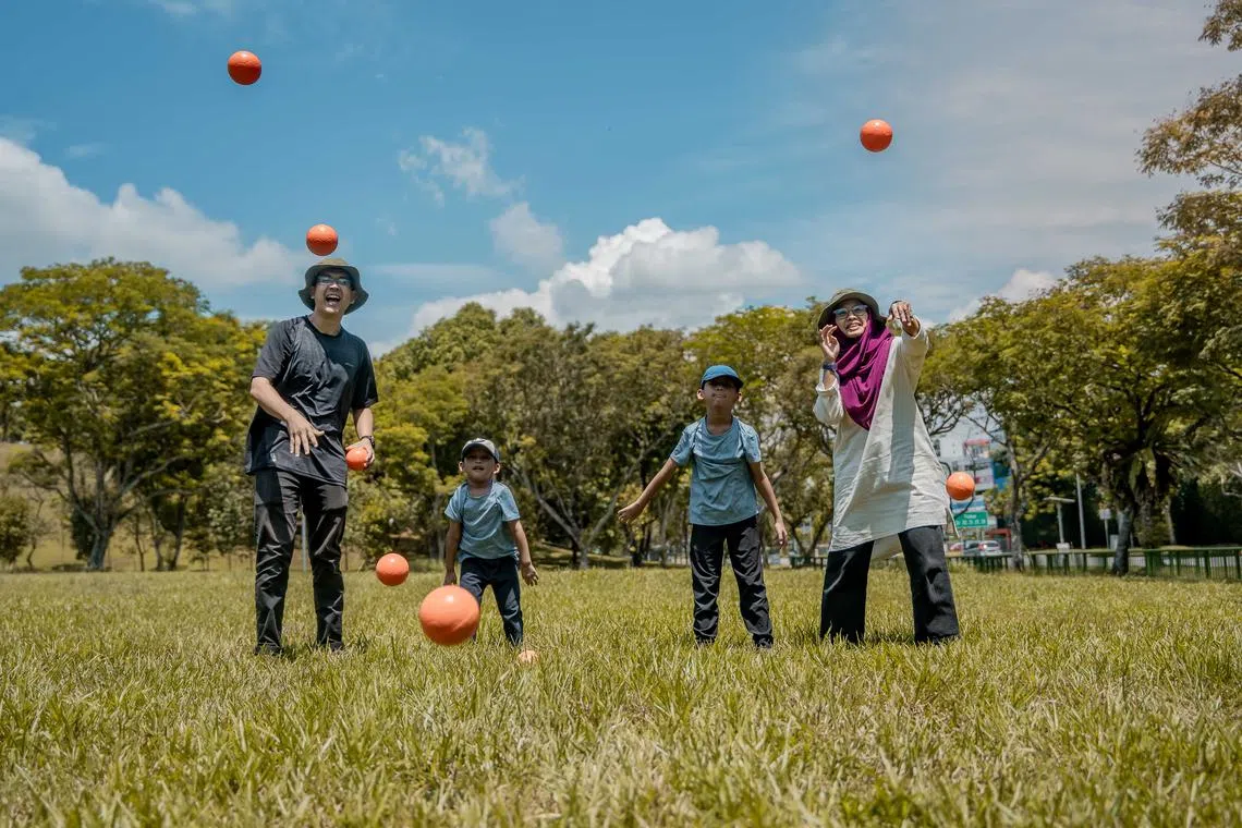Apabila Encik Muhammad Kamit dan Cik Nadiah Mohammad Yusoff mengajak dua anak lelaki mereka, yang berusia lima dan lapan tahun, bermain di luar, mereka tidak sekadar menyarungkan kasut dan keluar rumah.