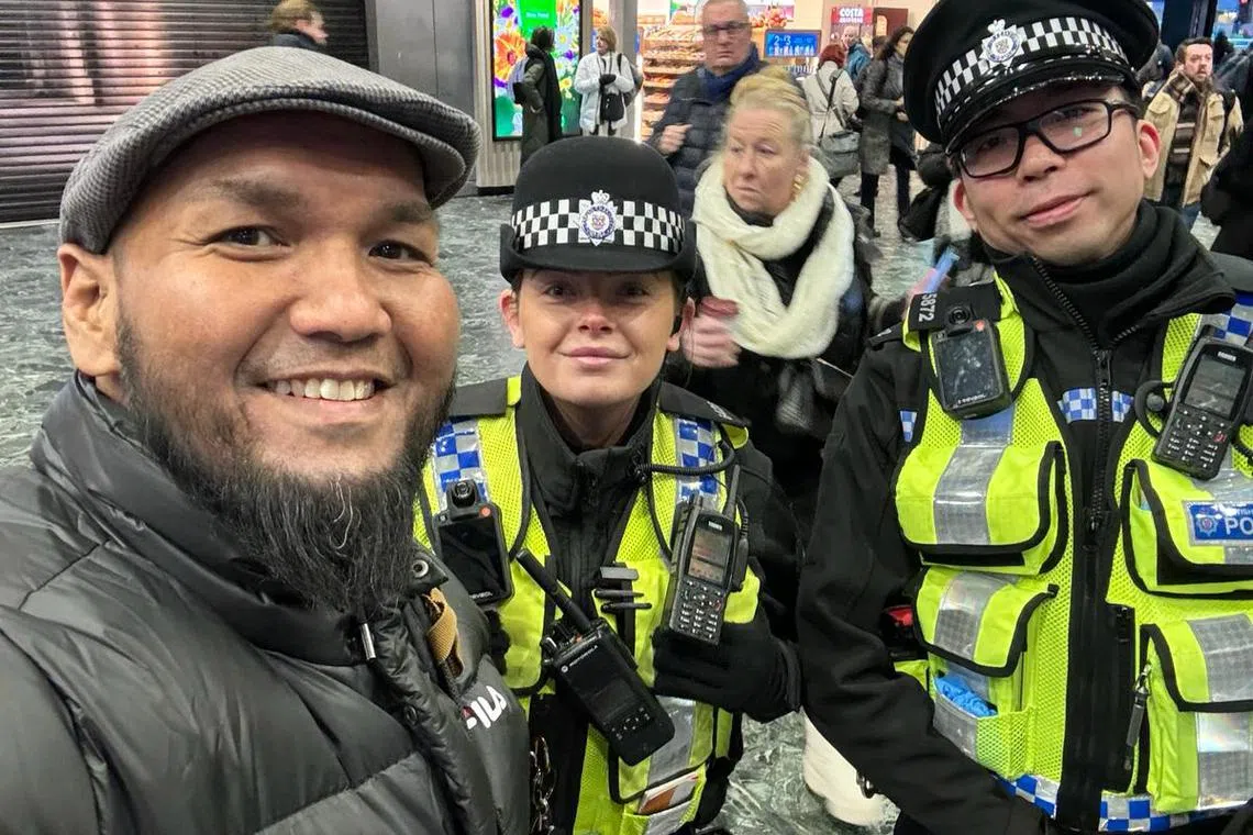Cef selebriti Singapura Cef Bob kelihatan di Trafalgar, London baru-baru ini dan beliau teruja dapat singgah ke kedai jenama Singapura ‘Old Chang Kee’ yang mempunyai cawangan di situ.
