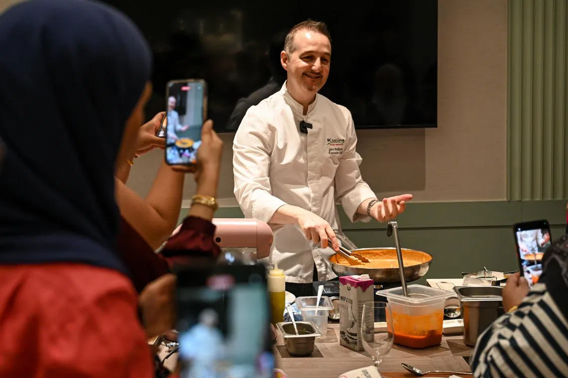 Cef Gero tunjuk cara masak pasta di restoran Kucina