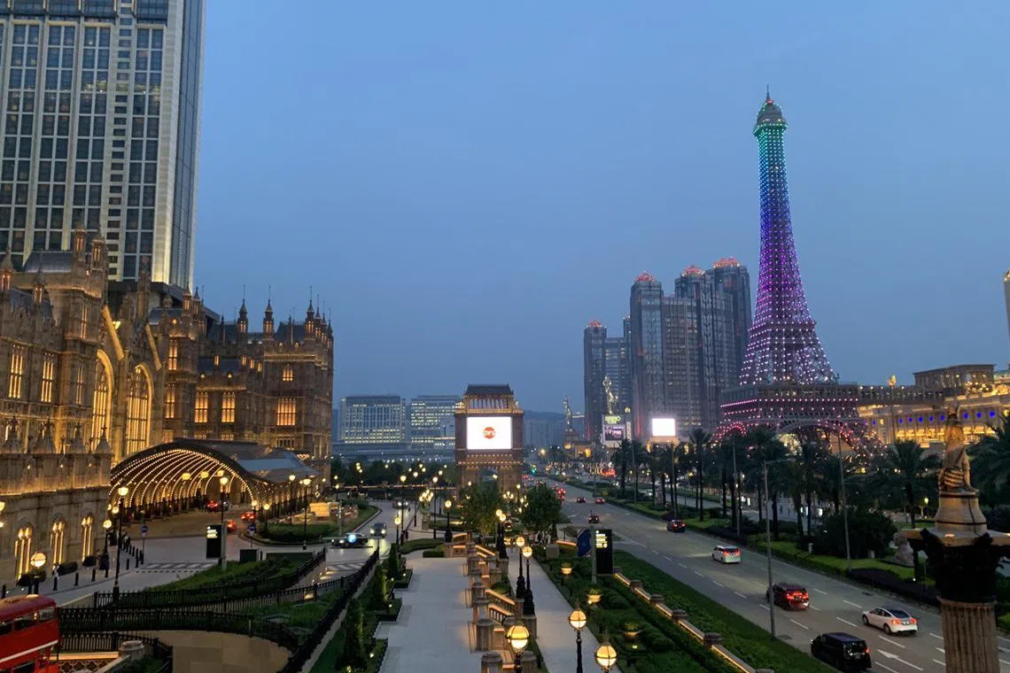 Daripada seni bina yang menakjubkan dan pemandangan yang indah, bandar Macau cantik dengan bangunan-bangunan besar yang bermandi cahaya. Macau, yang sering disebut sebagai ‘Las Vegas of Asia’, terkenal dengan kasino glamor dan resort mewah.