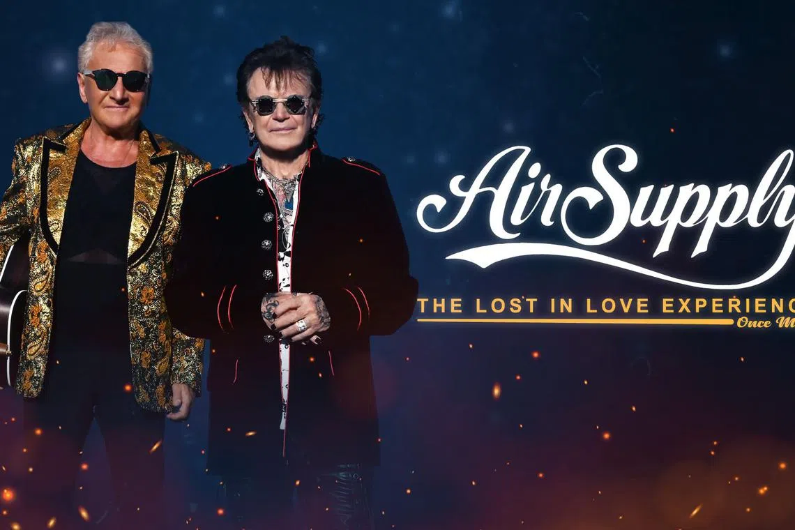 Sementara itu, Air Supply akan mengadakan konsert jelajah, The Lost In Love Experience, yang dibawakan Unusual Entertainment, mulai 8 malam di Resorts World Ballroom, Singapura pada 13 Disember.