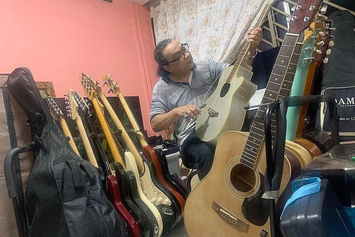 "Apabila pandemik Covid-19 melanda, kami tidak dapat meneruskan kelas latihan, jadi kesemua gitar ini saya simpan di tempat simpanan di Primz BizHub di Woodlands Close.
