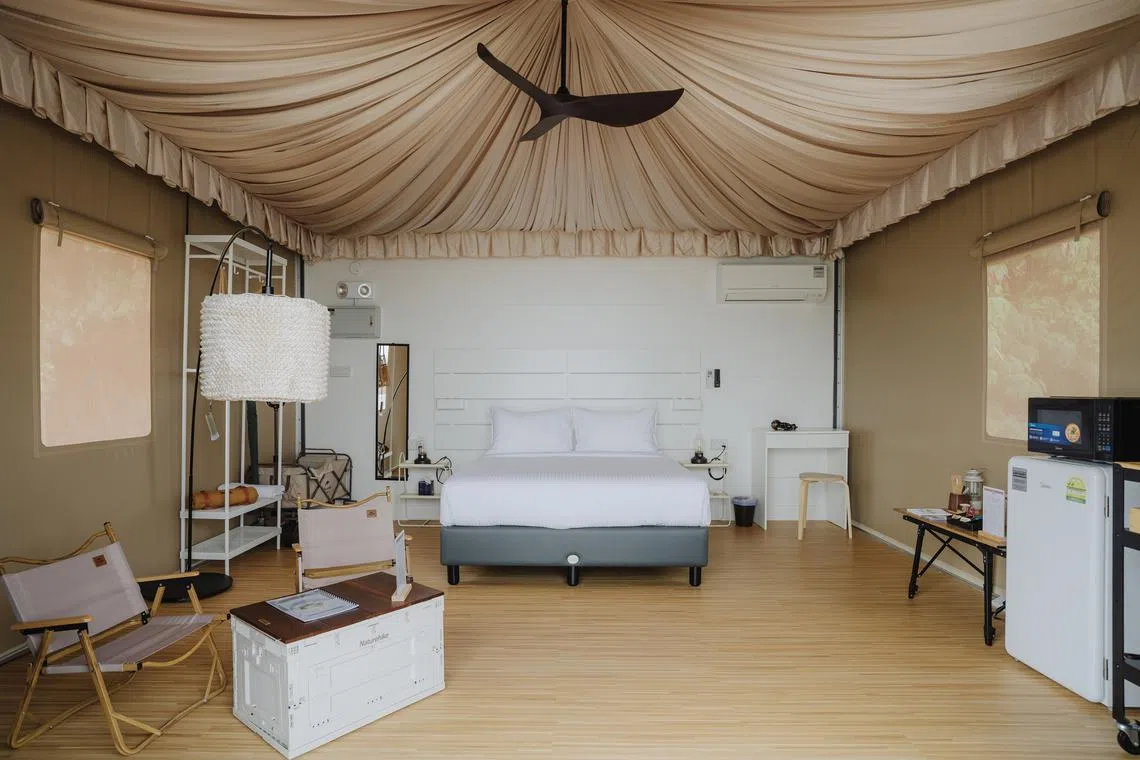 Rekaan dalaman khemah tersebut nampak serba lengkap dan agak mewah!