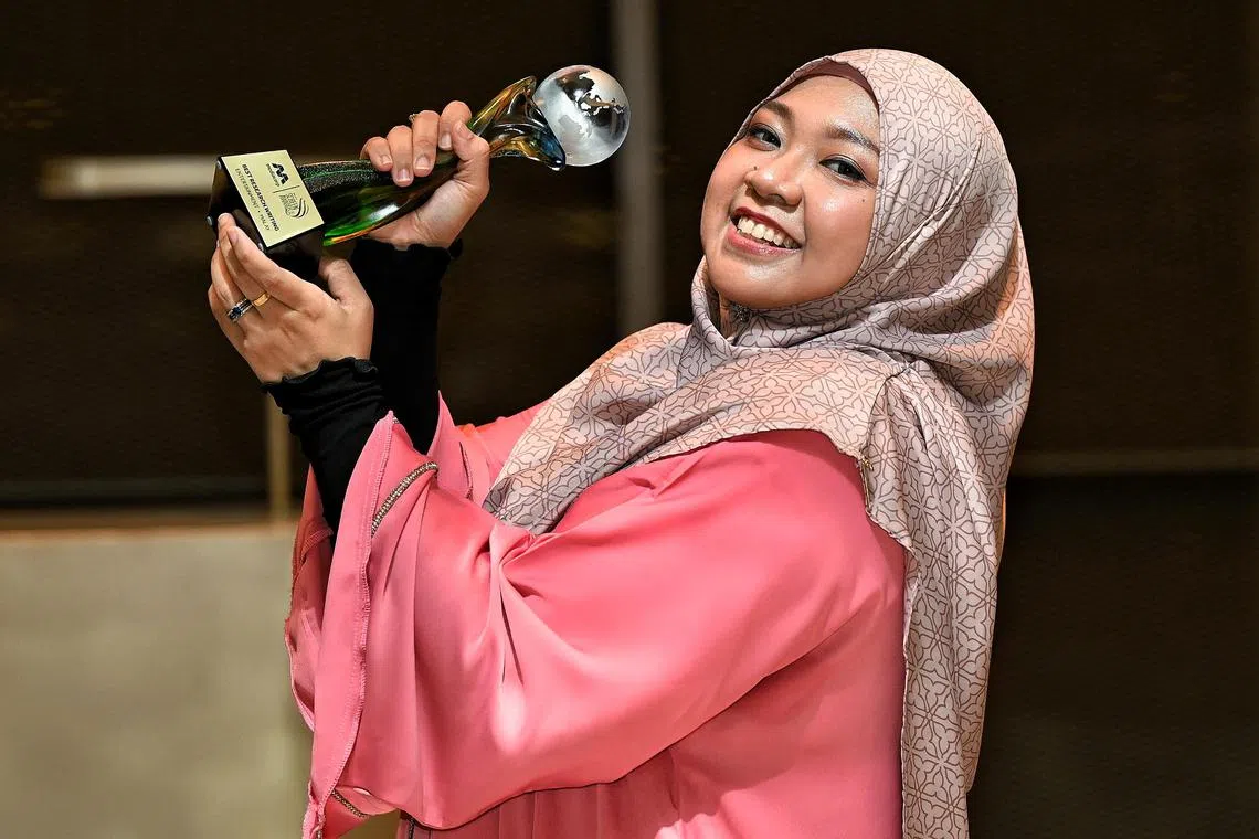 Rein Zahrein, julang piala ‘Anugerah Screen Mediacorp’ 2025 bagi kategori Skrip Kajian Terbaik (Hiburan)