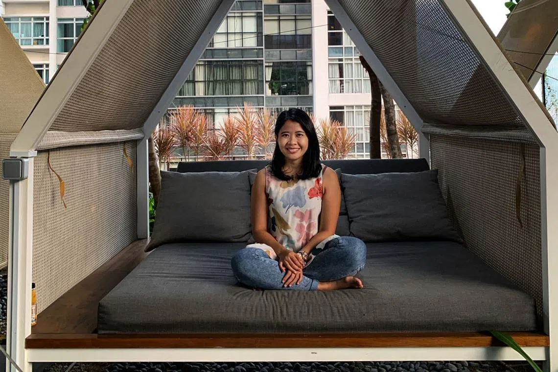 PELBAGAI RUANG SELESA: Tamu di Oasia Hotel Downtown boleh merehatkan minda sambil menjamu selera, membaca atau sekadar bersantai di pelbagai ruang selesa yang disediakan di sekitar hotel itu termasuk di pondok ini yang terletak di Club Floor yang eksklusif buat tamu yang menginap di bilik Club. - Foto BH oleh ERVINA MOHD JAMIL -