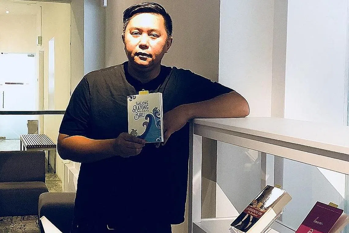 KONGSI KENANGAN: Encik Farihan Bahron dan tiga teman lain dari Sekolah Menengah Teknikal Tanjong Katong menyatukan cerpen kenangan dalam antologi 'Tanjong Katong Airnya Biru', yang akan dilancarkan di The Arts House, Sabtu ini. -