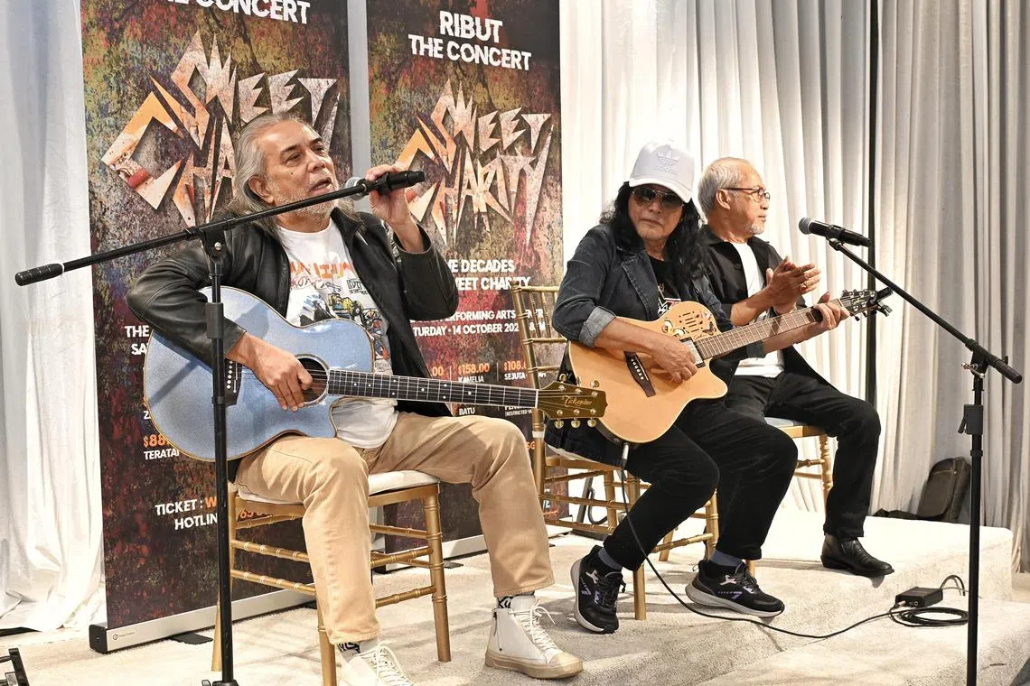 Ramli, 70 tahun, dan rakan-rakan sehati sejiwa, Ahmad Jaffar (pemain papan nada), 69 tahun dan Rosli Mohalim (gitaris utama), 69 tahun, berkongsi kisah perjalanan seni mereka pada sesi media mengumumkan, Ribut The Concert: Five Decades of Sweet Charity.
