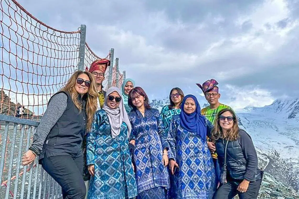Berbaju kurung bagaikan menyambut Hari Raya penuh meriah di kawasan permatang berbatu Gornegrat sekitar pergunungan Pennine Alps di Switzerland.